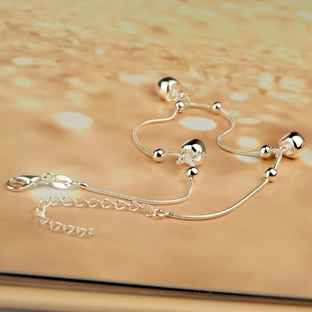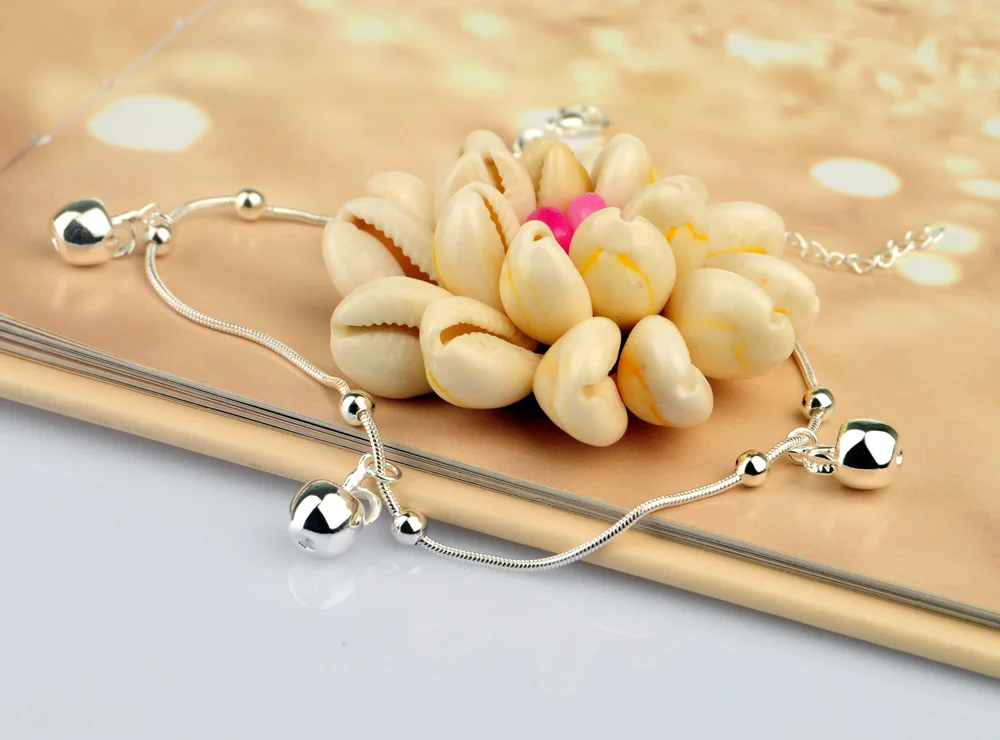 Женские ножные браслеты из серебра 925 пробы. Ножной браслет с колокольчиками.