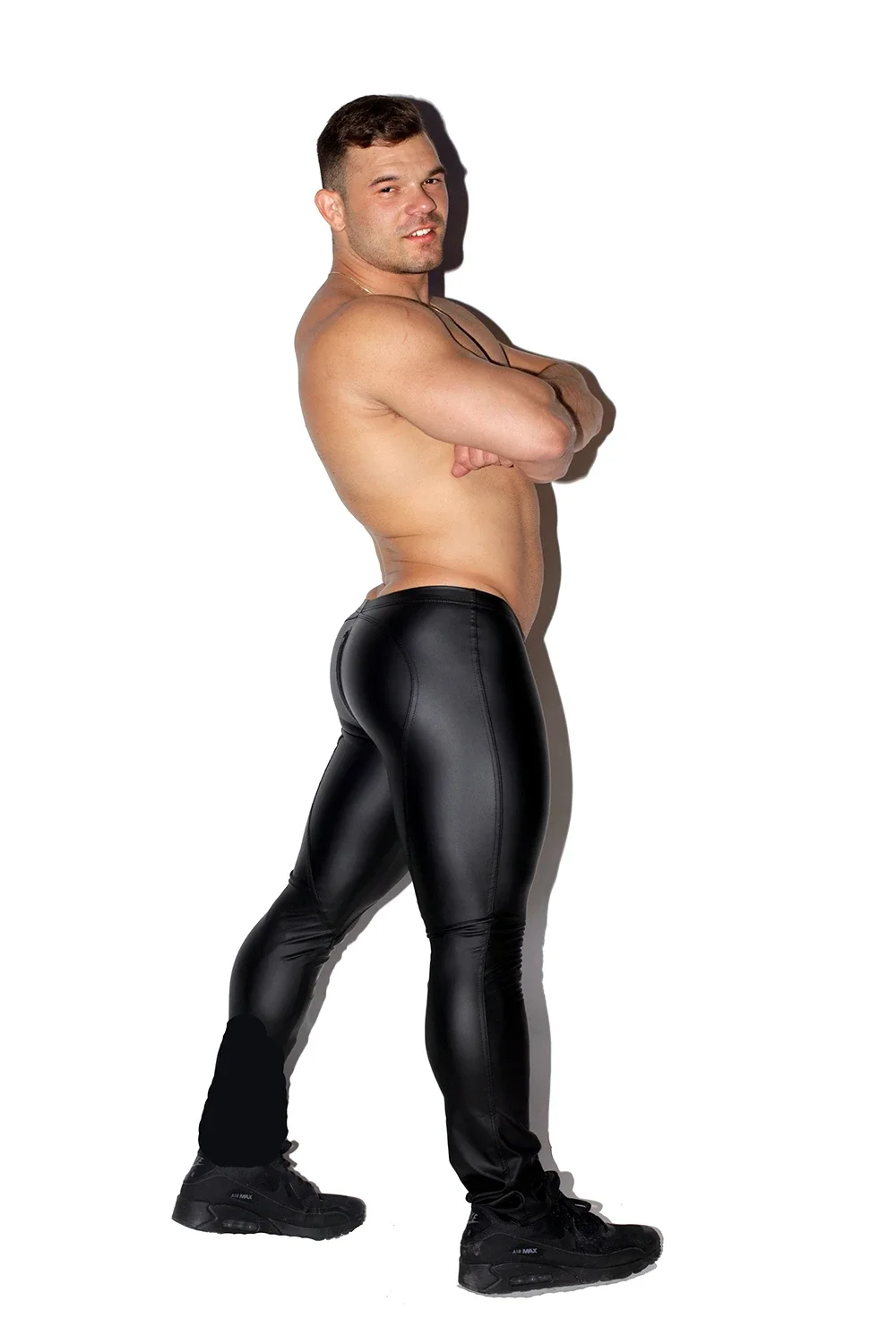 Мужские длинные штаны из искусственной кожи на молнии с открытым шаговым швом, с эластичной резинкой на талии, размера плюс M-2XL, облегающие брюки из искусственной кожи для ночного клуба