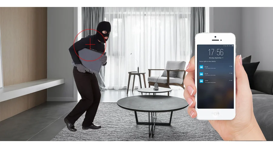 Когда кто-то движется, камера обнаружит и отправит сообщение на мобильный телефон.