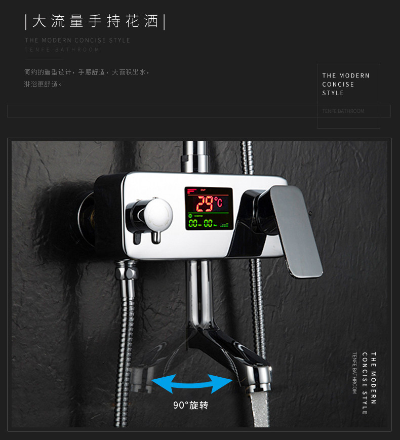 Смеситель для ванны с цифровым ЖК-дисплеем, умный смеситель для ванны и душа, умный смеситель для душа с температурой дождя и водопада