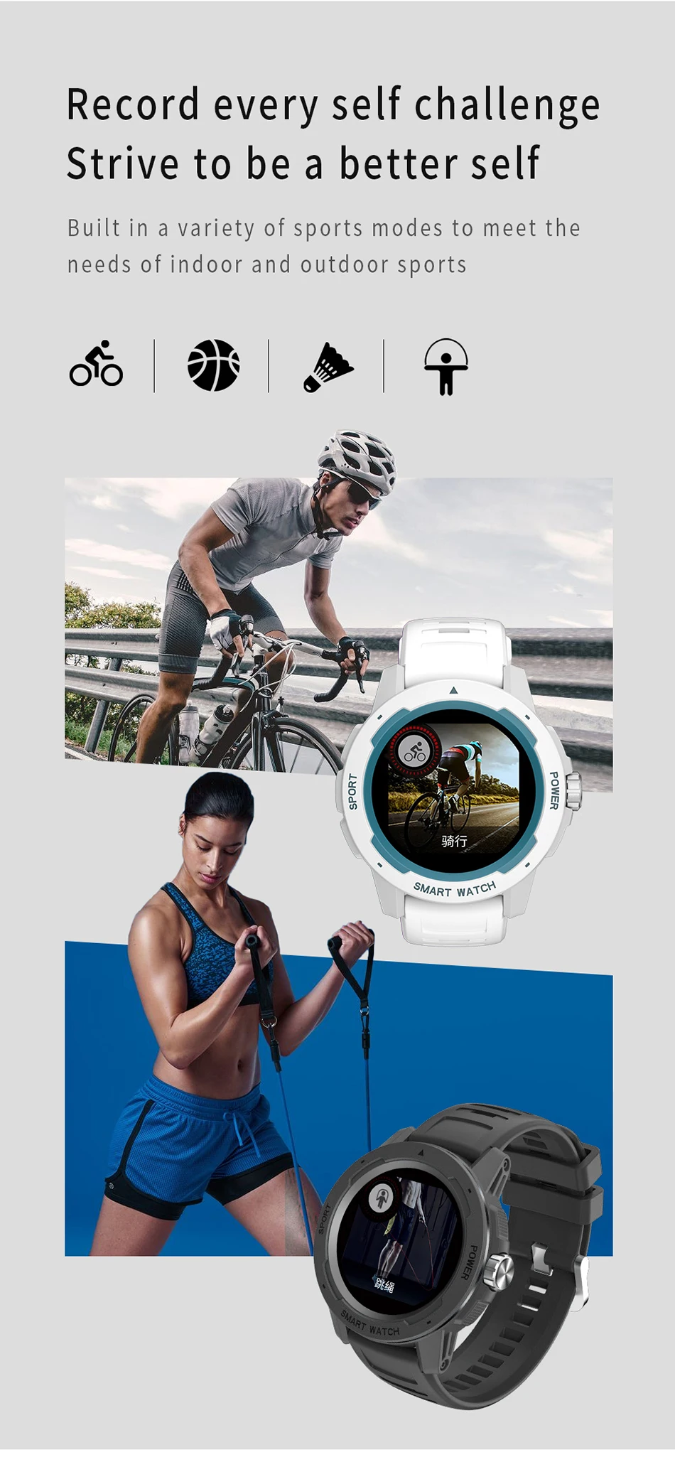 Мульти-спортивные режимы: бег, езда на велосипеде, прогулки, бадминтон, баскетбол, футбол, Скакалка.