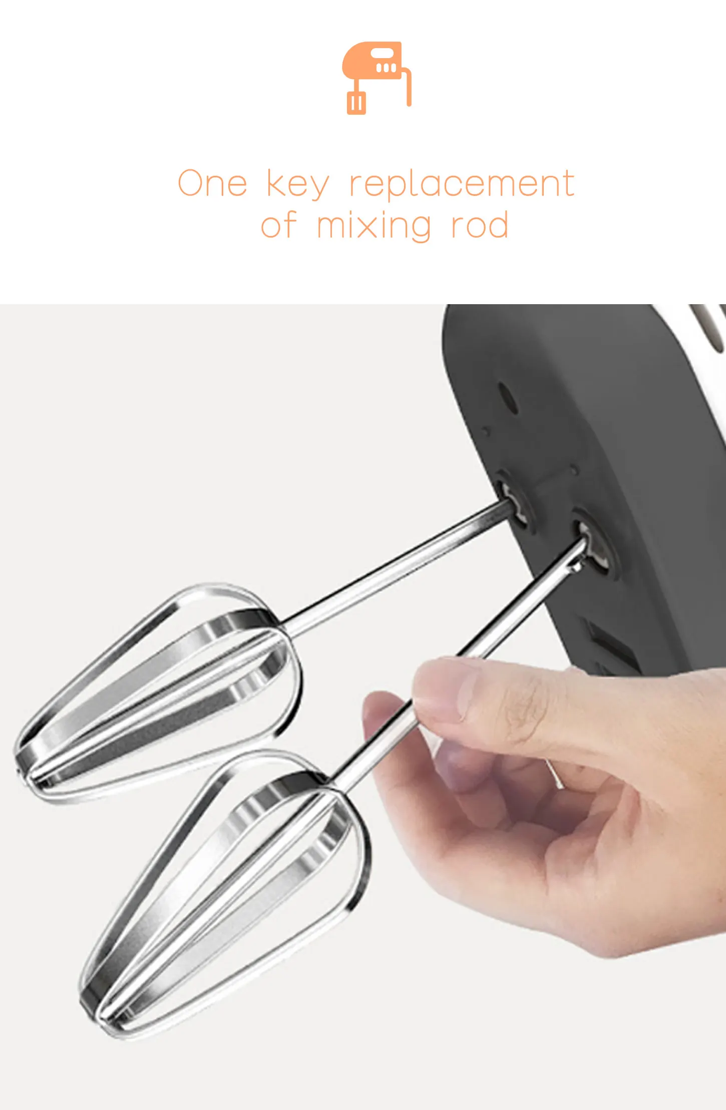 Характеристика1,7 скорость s: Смешайте ингредиенты для различных рецептов от медленного перемешивания в массивных ингредиентах, таких как орехи или шоколадные чипсы, взбивая яичные белки или тяжелый крем со скоростью 7.2. Мягкий старт™Функция позволяет beaters постепенно достигать выбранной скорости, чтобы предотвратить разбрызгивание ингредиентов.3.Легко управлять: легко и быстро извлеките любой аксессуар из ручного миксера одним нажатием кнопки («OFF»).4. Мягкая ручка обеспечивает комфорт во время смешивания.5.Хромовая машина из нержавеющей стали и крючок для теста.6. Удобный ручной: ручка позволяет легко управлять ручным блендером.Использование руководства: