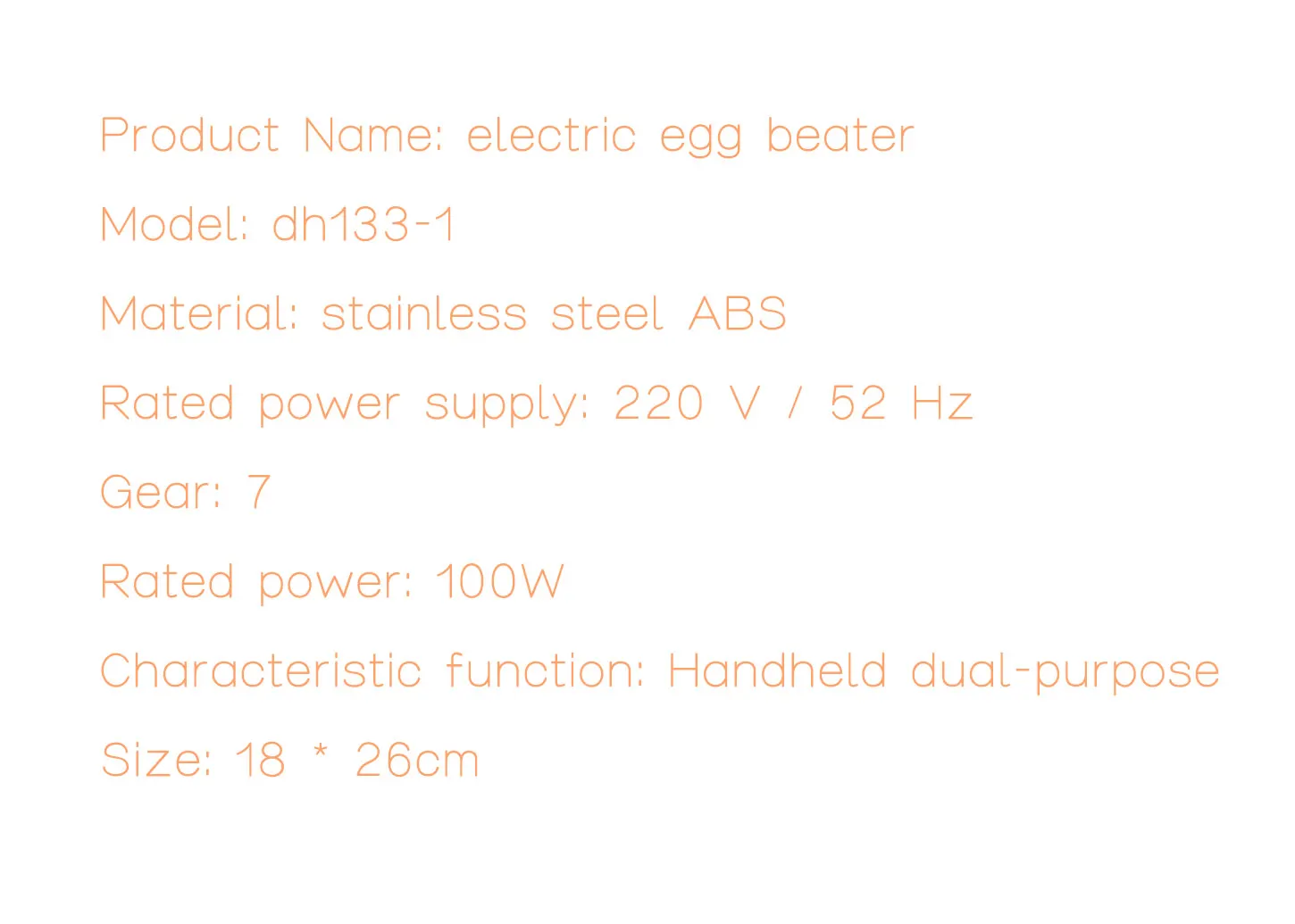 СпецификацияНазвание:Многофункциональный Электрический ручной миксерНапряжение:220VСкорость:Семь скоростейМощность:100 ВтЦвет:БелыйРазмер:4,33*2,8*7,09 дюймовОписаниеРучные смесители-это мощные, компактные и прочные приборы для всех ваших потребностей в смешивании.Ручные смесители-это надежные небольшие приборы для выпечки и приготовления пищи.Эти легкие смесители предназначены для питания с 7 скоростями, которые идеально подходят для смешивания, перемешивания, биения и взбивания. Модели оснащены традиционными хромированными битерами для оптимального смешивания.Если вы смешиваете ингредиенты для выпечки или взбиваете яйца для омлет, ручные смесители облегчают приготовление и экономят ваше ценное время на кухне.