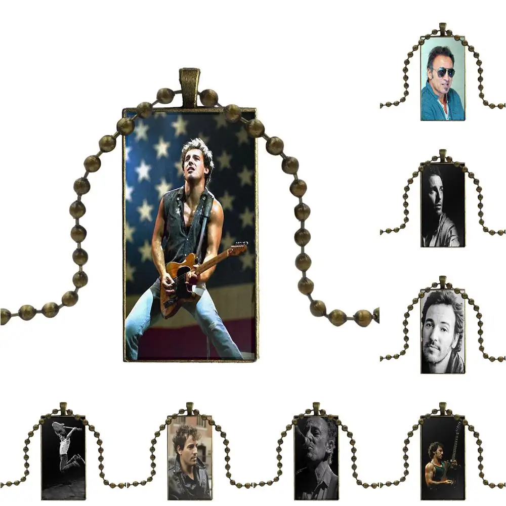 Для женщин и мужчин модный стеклянный кабошон кулон прямоугольное ожерелье чокер ожерелье ювелирные изделия Брюс Спрингстин Американский фаг