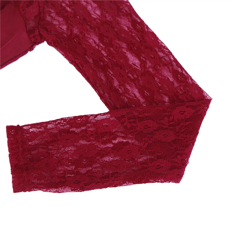 Ohyeahlover сексуальный боди с длинными рукавами и круглым вырезом, облегающий кружевной Цветочный комбинезон в технике пэчворк, черный Женский Повседневный боди Verano RL80372