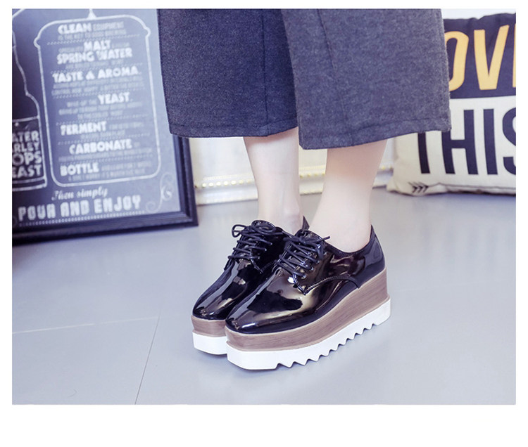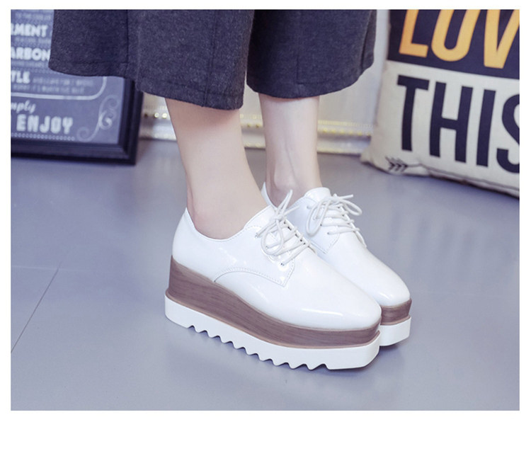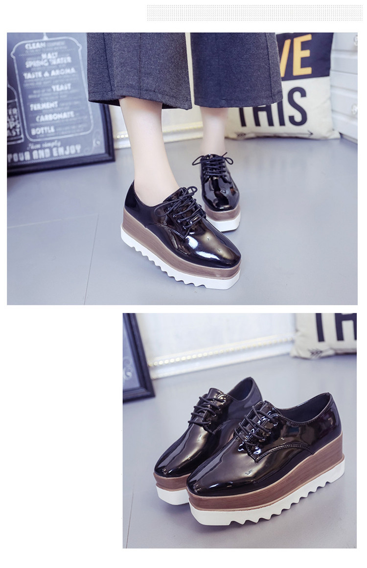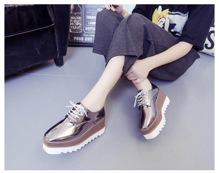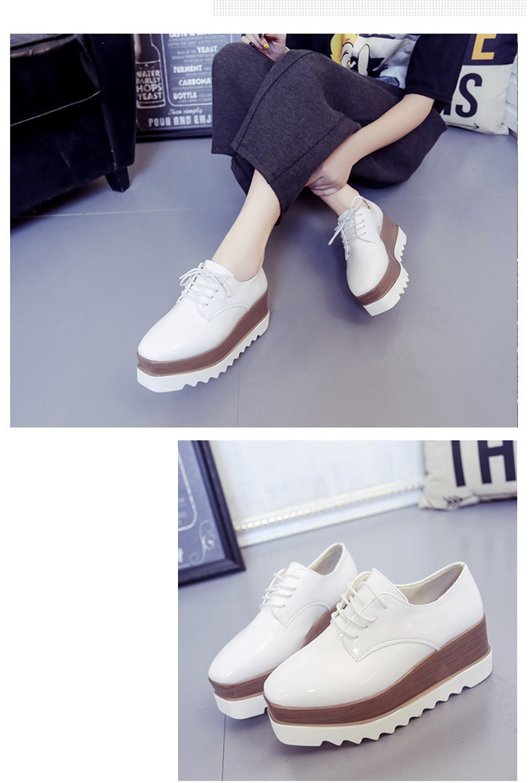 Модная однотонная женская обувь на толстой подошве; Коллекция 2018 года; Сезон весна; Криперы; Повседневная обувь на платформе; Женские оксфорды на шнуровке; Обувь на плоской подошве