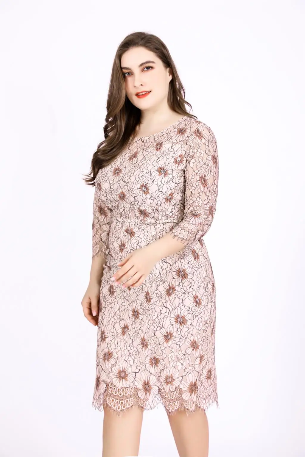 Кружевное Вечернее Платье 2018, женское летнее платье-карандаш с рукавом три четверти и цветком, облегающее Платье До Колена 6xl, большие размеры