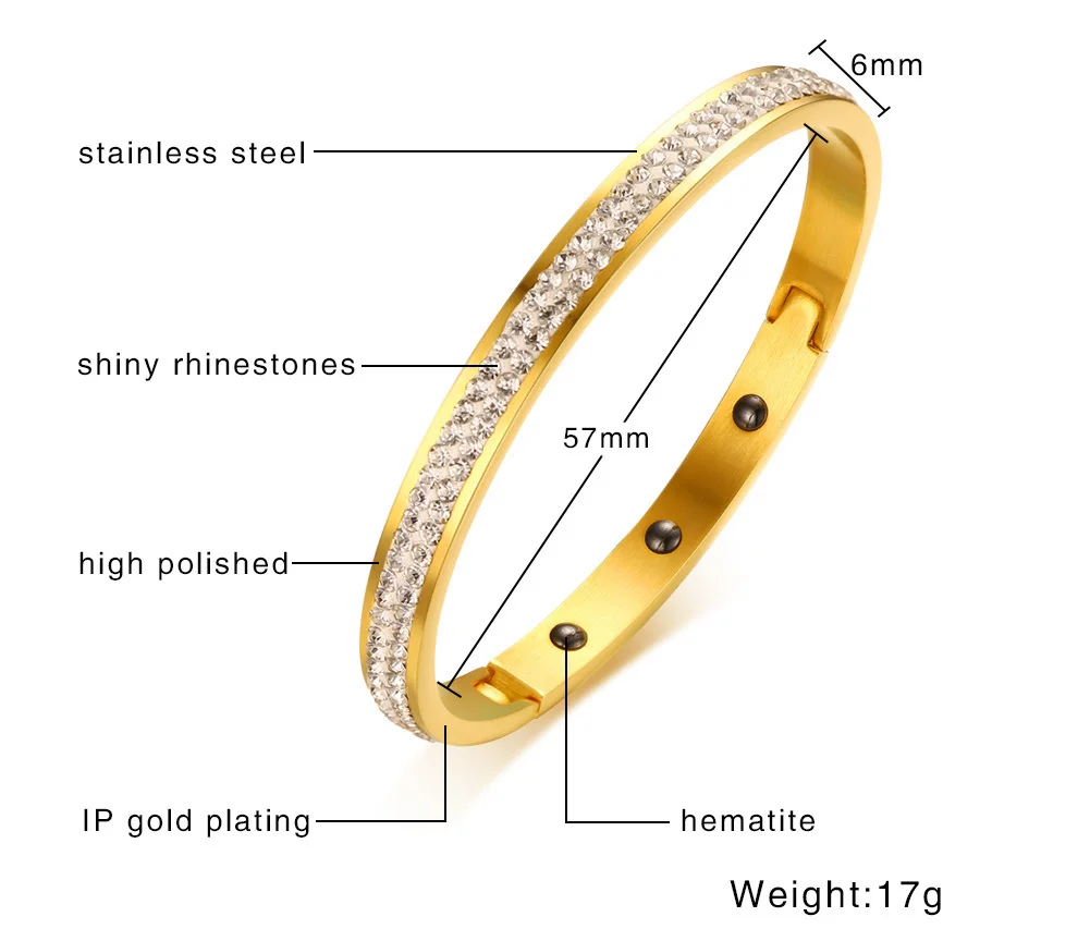 Этот браслет изготовлен из высококачественной прочной нержавеющей стали и магнита с потрясающим кубическим цирконием в 2 тонах и шарнирах. Браслет не потускнеет со временем.