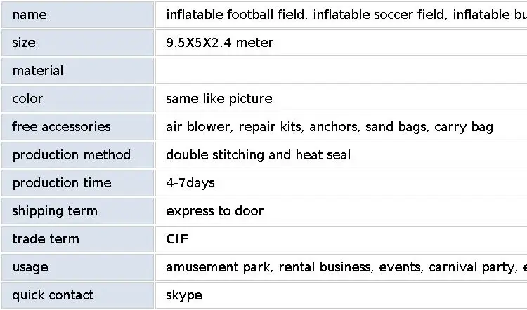 Наша компания является профессиональным производителем надувных изделий. Мы производим высококачественные и безопасные надувные изделия с 2003 года. Мы предлагаем широкий спектр надувных изделий, таких как надувные вышибалы, горки, палатки, рекламные надувные лодки, водные игры, спортивные игры и так далее. Мы экспортируем нашу продукцию в такие страны по всему миру, как Великобритания, Америка, Мексика, Австралия, Канада, Франция, Саудовская Аравия, Бразилия, Южная Африка и так далее.