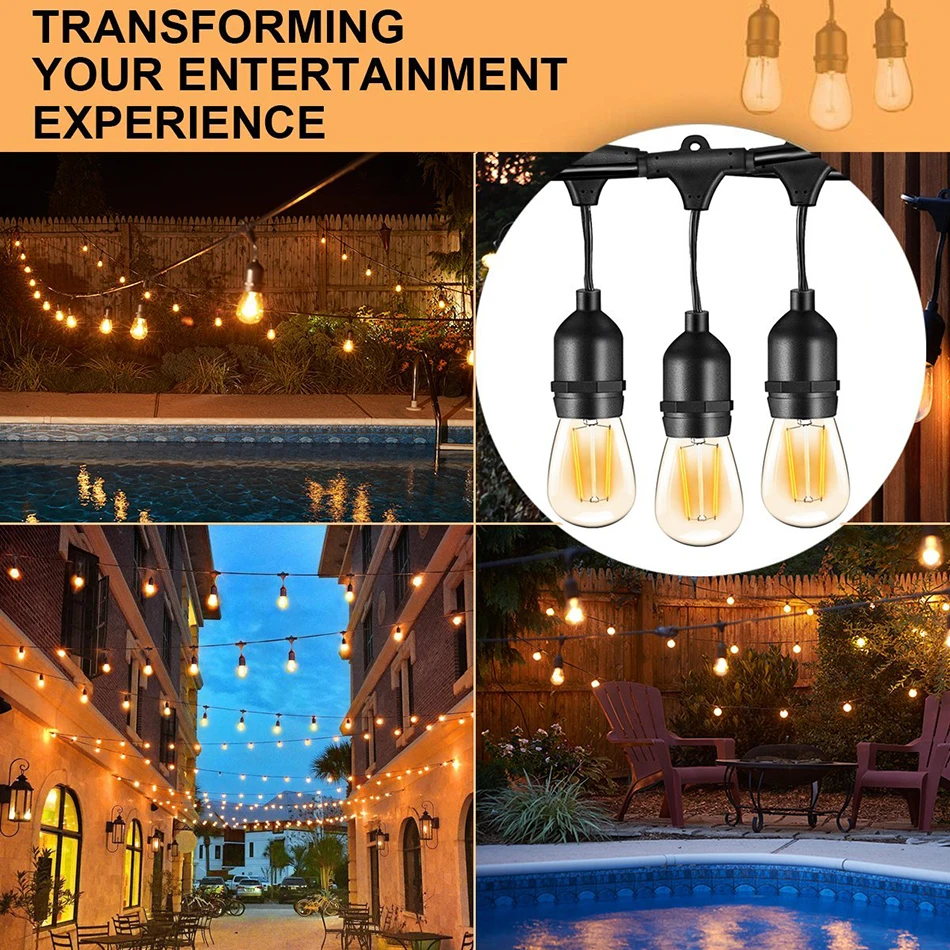 Outdoor LED Lighting S14 Waterproof Light String E27/E26 Lamp Replacement Bulb Holiday Light Garden Restaurant Wedding Decoration Light String