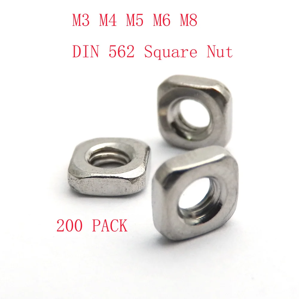 200 шт./лот тонком квадратном гайка M3 M4 M5 M6 M8 A2 гайки из нержавеющей стали DIN 562