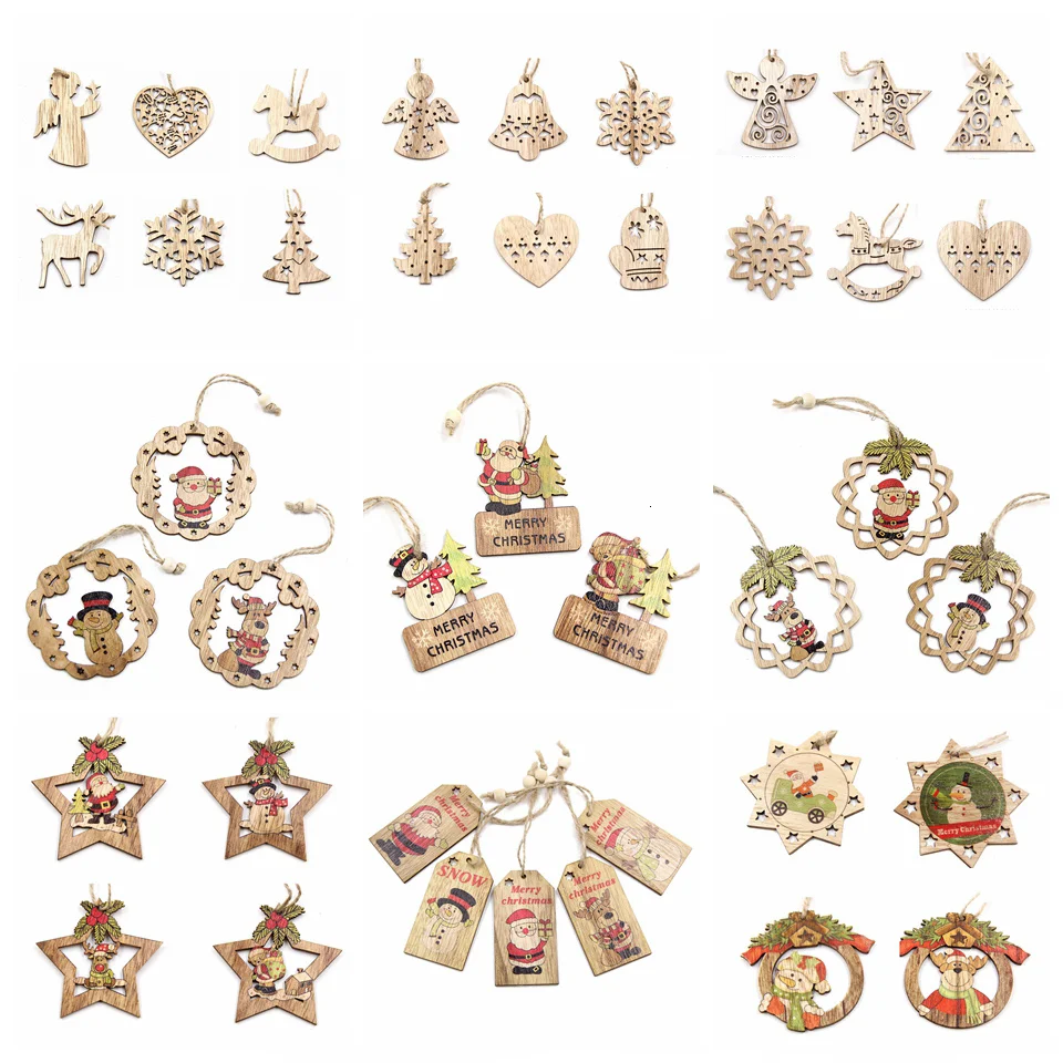 Хит! Набор из смешанных рождественских Деревянные Подвески, украшения, креативный деревянный орнамент с рождественской елкой, рождественские украшения, подарок для детей