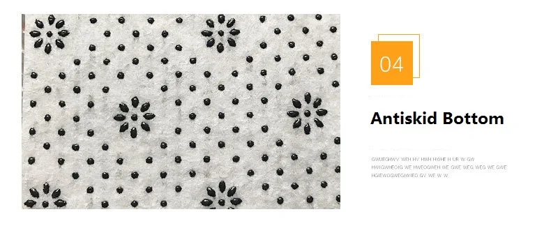 4. Нижнее Описание: Нетканый материал. Нескользящие Частицы внизу. С супер противоскользящим эффектом и проницаемостью.
