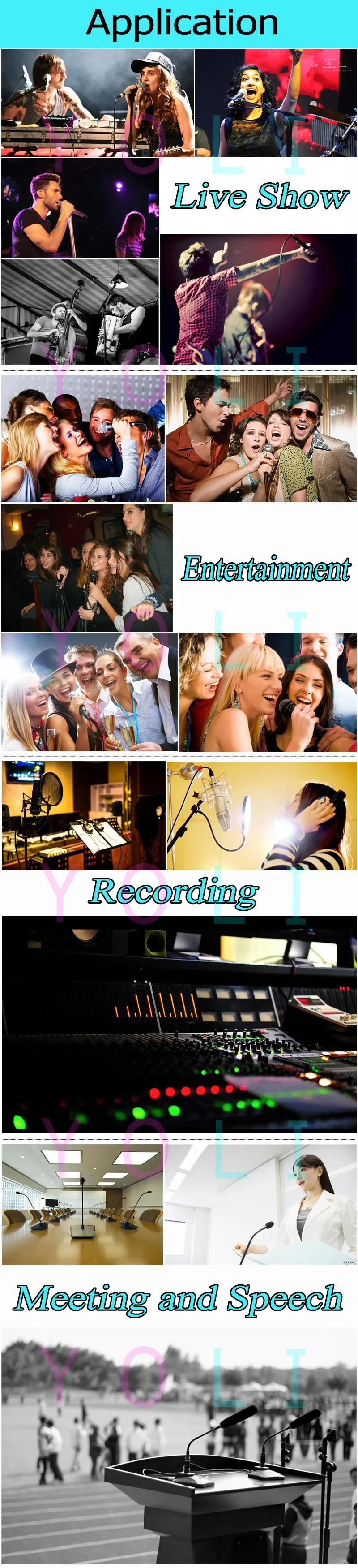 1. Высококачественная антенна 2. Светильник прием радиочастотного сигнала 3. Материал: пластиковый передатчик 4. Батарейный отсек: необходима батарейка АА 2*1,5 В (не входит в комплект) 5. Разъем для микрофона: разъем Mini 3pin XLR 6. Выключатель питания: дизайн кнопки 7. Экран: HD экран с подсветкой (не может быть изменен) 8. Длина кабеля гарнитуры и нагрудного микрофона: 1 метр