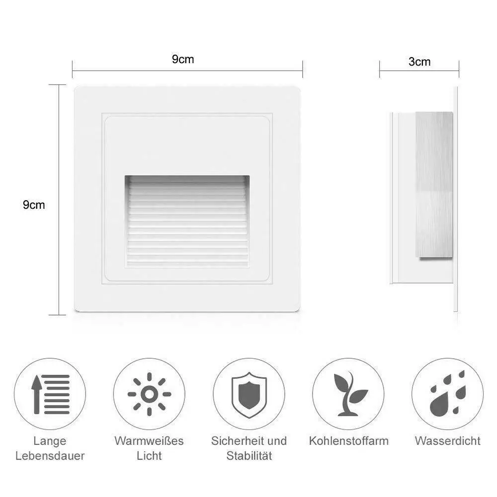 Спецификация:Входное напряжение:AC85-265VМатериал корпуса: термостойкий алюминийПотребляемая мощность: 3 ВтЦвет освещения: холодный белый, теплый белый (300 лм)Тип светодиодный: COBФорма: квадратное углублениеЦветовая температура: теплый белый2700-3000K/холодный белый 6000-6500KCRI:≥ 80Угол луча: 90 °Размер: 95*95*32 ммРазмер отверстия: 86*86 мм,(Чип на плате) Срок службы: более 50000 hВес: 110 гВодонепроницаемый IP65Идеально подходит для бара, КТВ, отеля и дома, лестничных ступеней, украшения коридора! Посылка включает:Светильник 8 шт. с коробкой