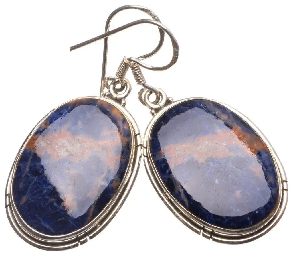 Винтажные сережки из серебра 925 пробы с натуральным темно-синим содалитом ручной работы; U0930