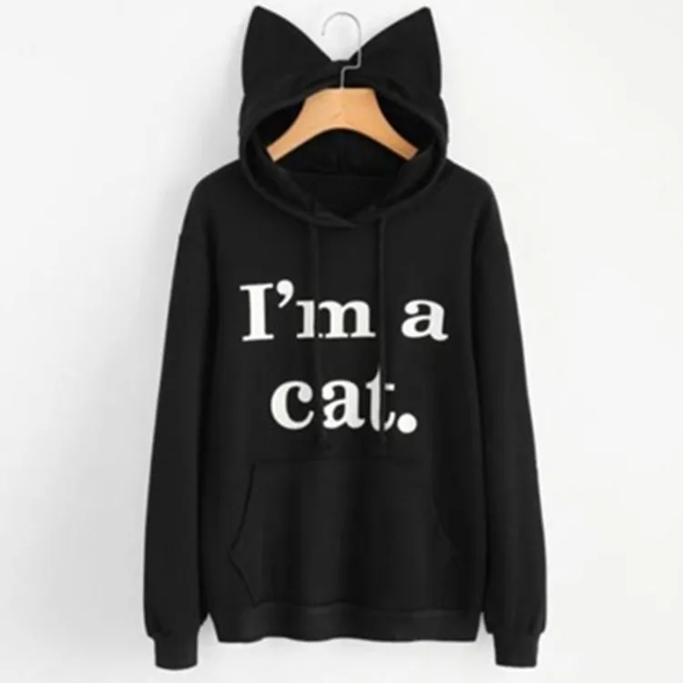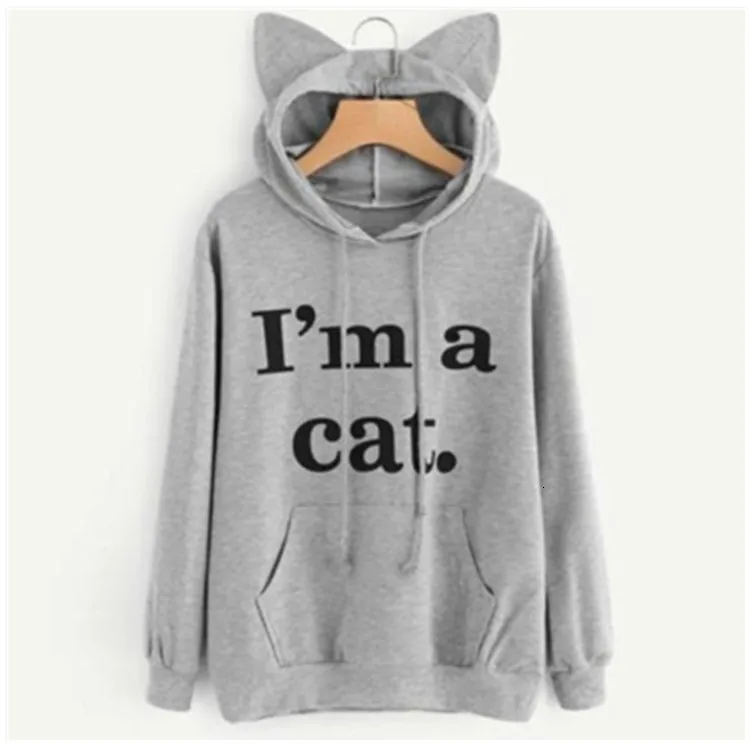 Толстовка на шнурке с принтом букв и кошачьими ушками, с длинным рукавом и передним карманом, осенняя Женская толстовка в стиле Харадзюку, Moletom Ey *
