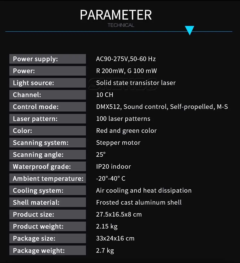 Режим управления: сигнал DMX512, самоходный режим, режим голосового управления, режим master slave.