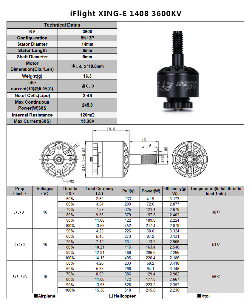 Если вы являетесь вентилятор популярного Xing серии двигателей, но хотите что-то меньшего размера для вашего 3 или 4 дюйма с четырехъядерным процессором, Син-C 1408 ваш идеальный вариант. Доступно в 2800Kv или 3600 kvв зависимости от того, какие реквизиты вы используете, и эффективности, которую вы хотите. См. Таблицу доверия ниже.