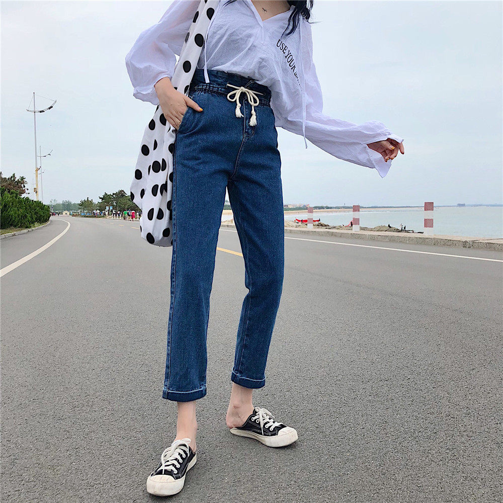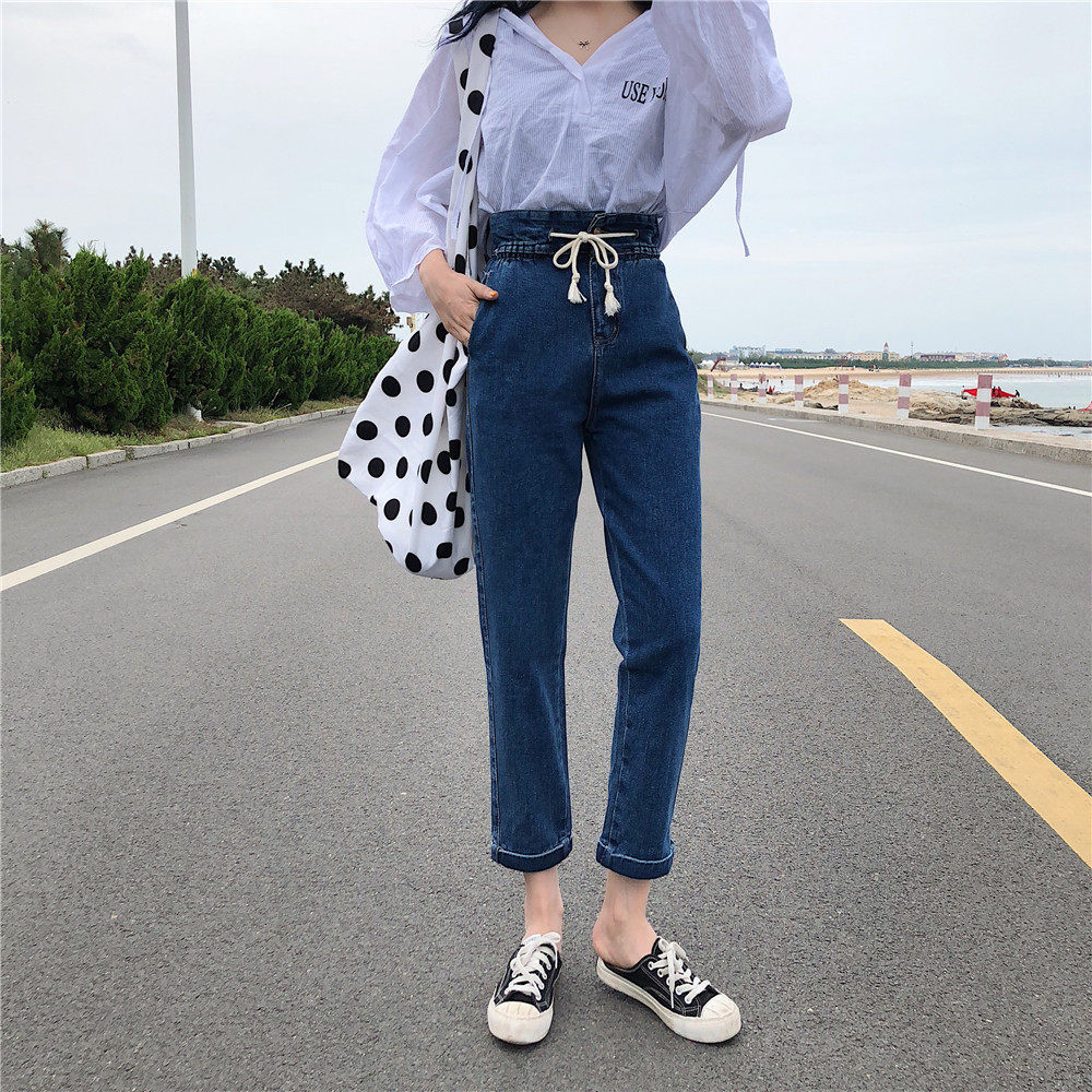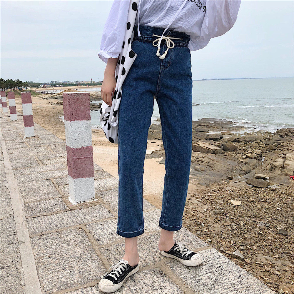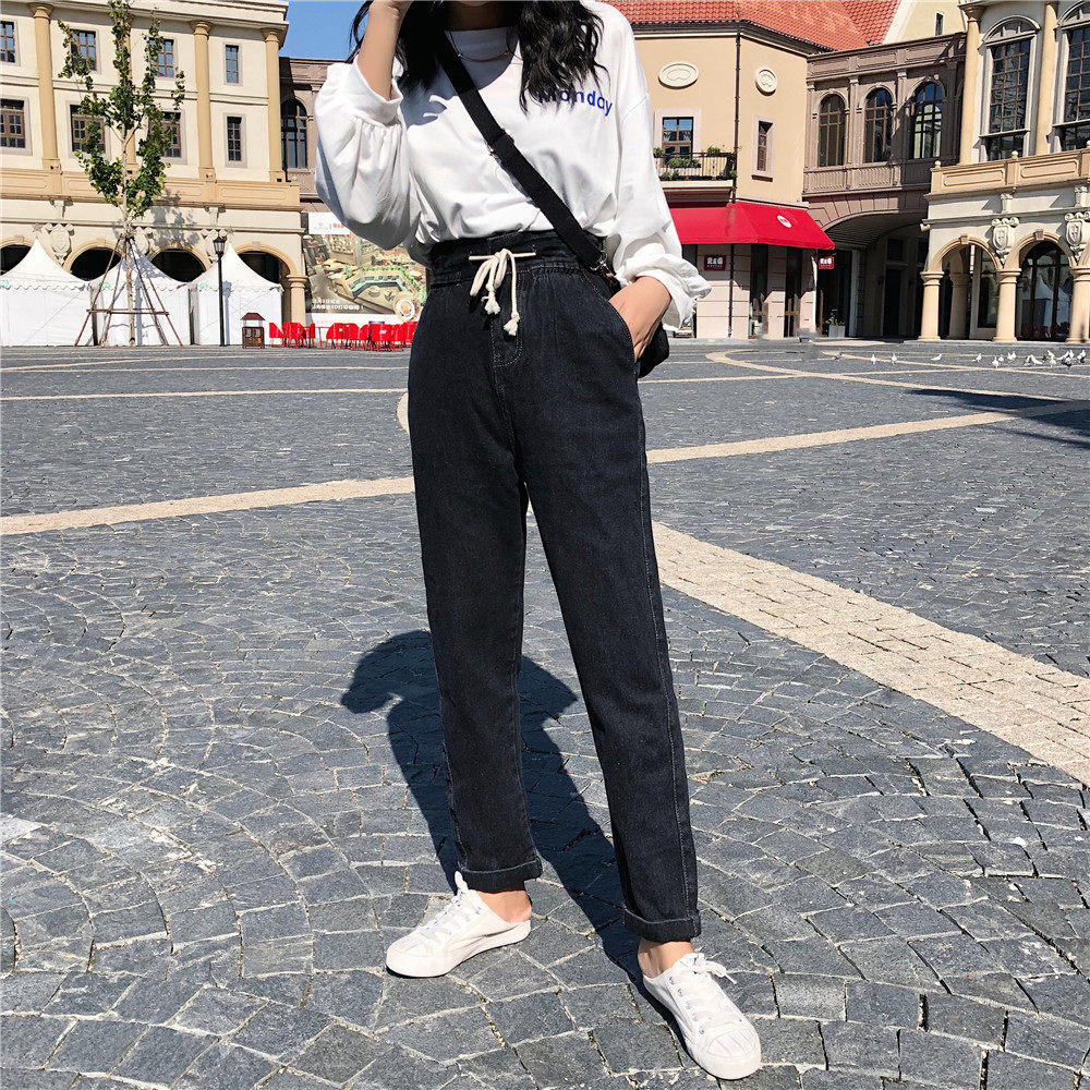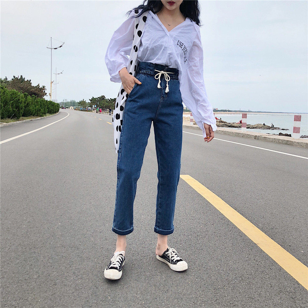 2 2 цвета 2018 корейский шик стиль шнуровка Высокая талия джинсы для женщин женские джинсы деним шаровары femme