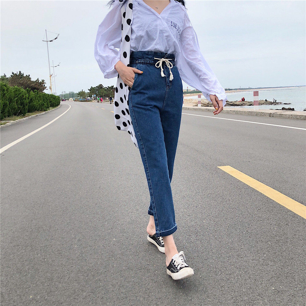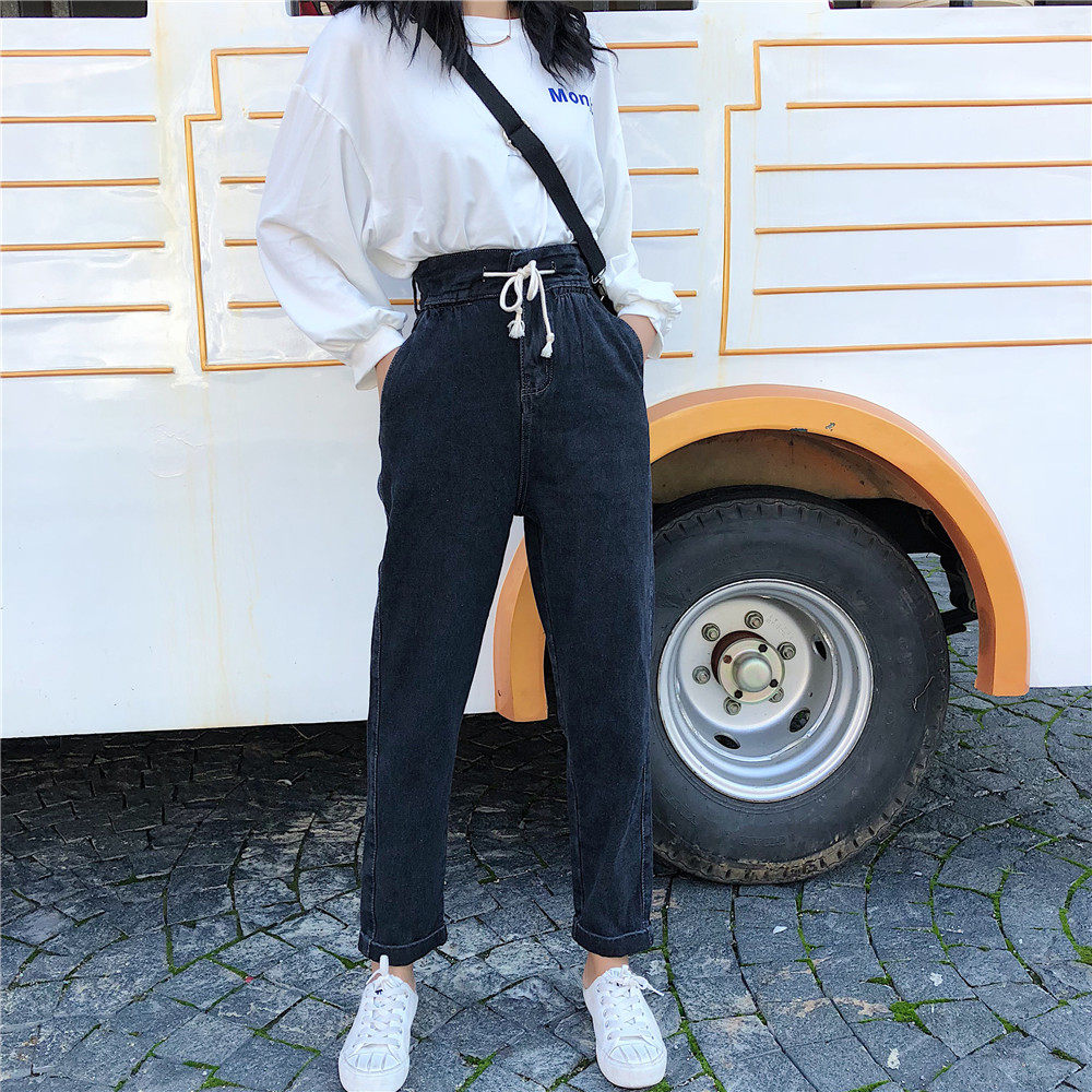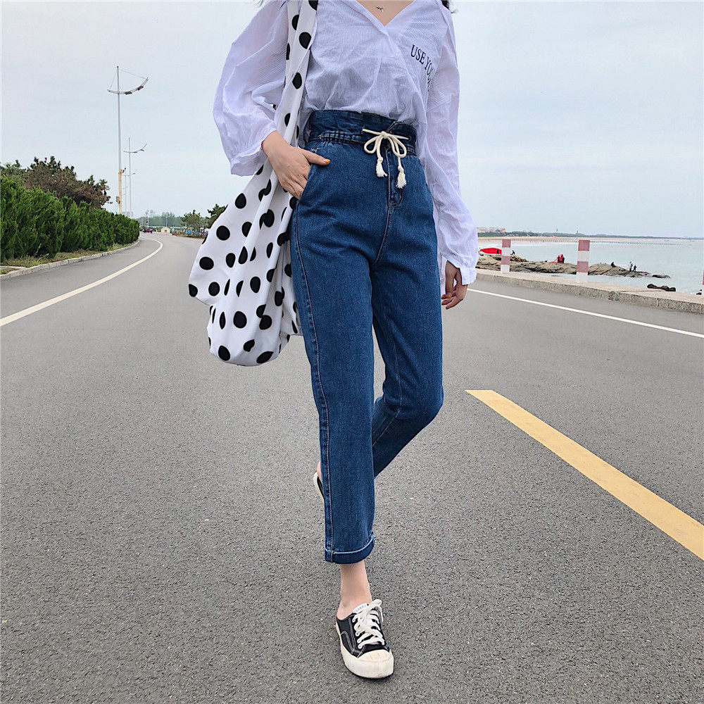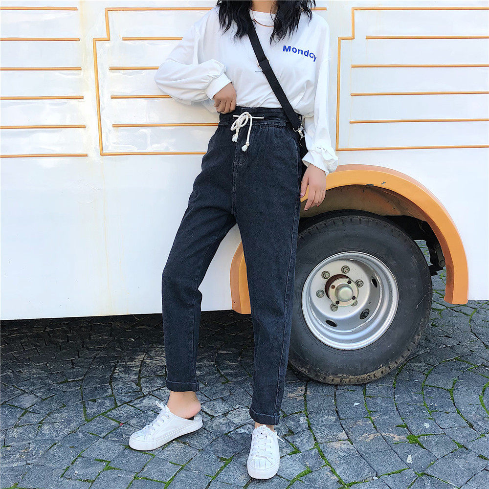 2 2 цвета 2018 корейский шик стиль шнуровка Высокая талия джинсы для женщин женские джинсы деним шаровары femme