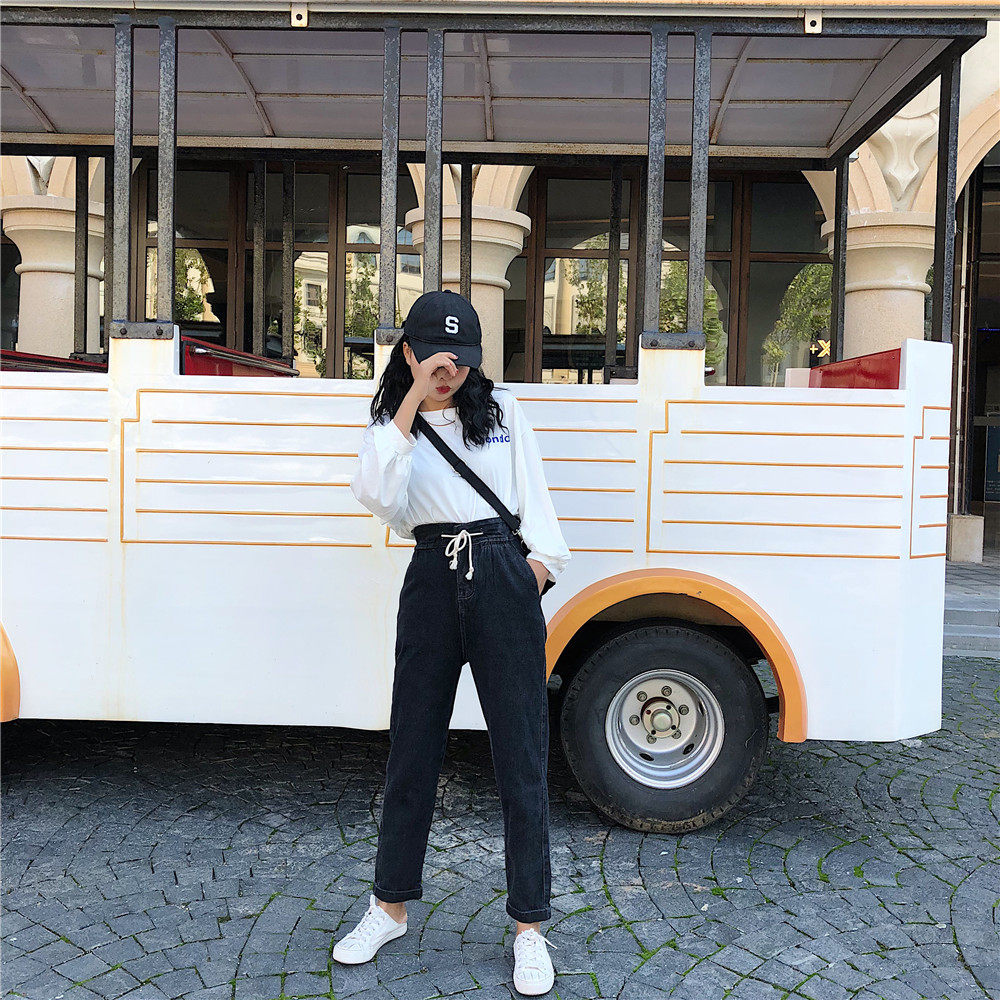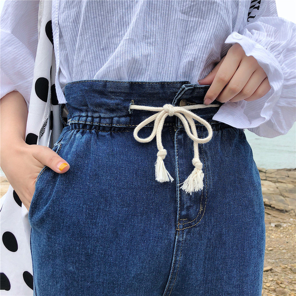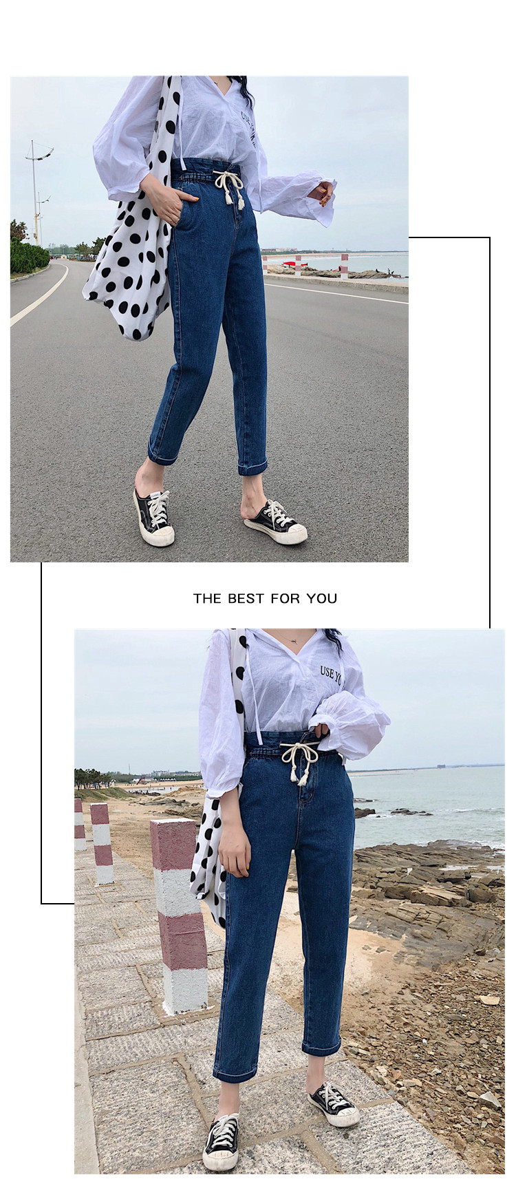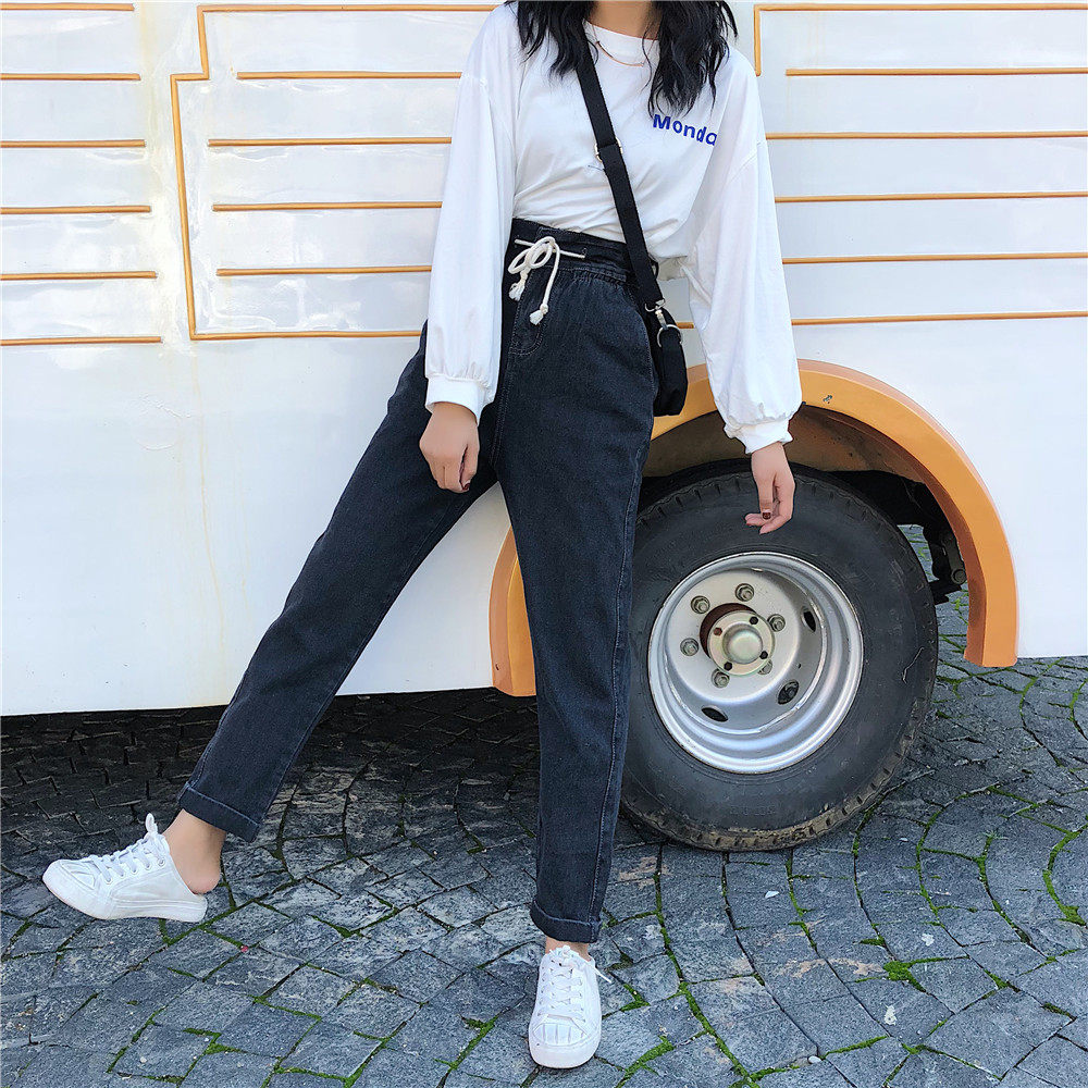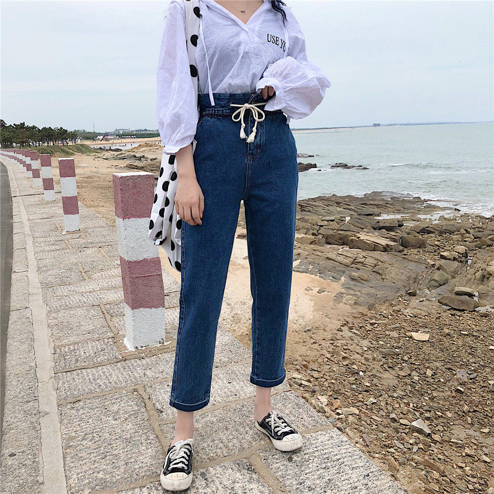2 2 цвета 2018 корейский шик стиль шнуровка Высокая талия джинсы для женщин женские джинсы деним шаровары femme