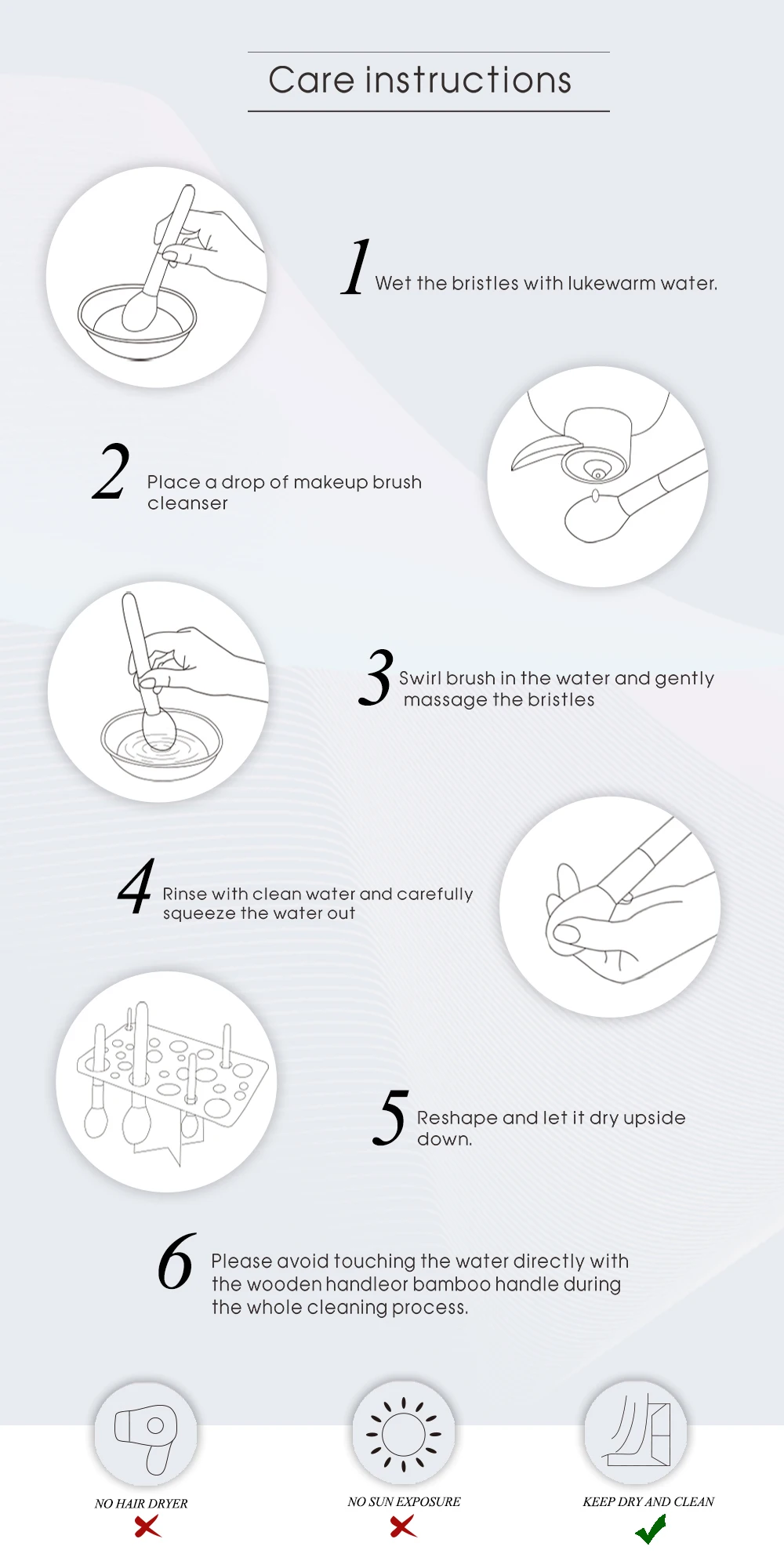Профессиональные кисти нуждаются в профессиональной очистке: Очищайте кисти на постоянной основе, чтобы они были гладкими и аккуратными, удаляйте цвет и бактерии на глубину, избегайте раздражения кожи и прорезей. Чистка кистей для натуральных волос: Натуральная шерсть требует особенно тщательной очистки, рассматривая ее так, как будто это ваши собственные волосы. После очистки восстановите форму и дайте высохнуть, чтобы в наконечнике не осталось воды. Профессиональные чистящие средства и мягкие шампуни для волос отлично подойдут для очищения. Совет визажиста Каплю добавьте немного кондиционера замечательно подходят в качестве дополнительного смягчения супер мягкие кисти. Чистка кистей из синтетических волос: Синтетический Ворс не вызывает легкоочищающийся. Все ваши кисти нуждаются в глубокой и интенсивной очистке на постоянной основе. Кисти для крема и жидких средств, таких как основа для макияжа или консилер, следует очищать от пятен чаще, чтобы сохранять их дезинфекции и без бактерий. Идеальным средством для удаления бактерий являются формулы на спиртовой основе.