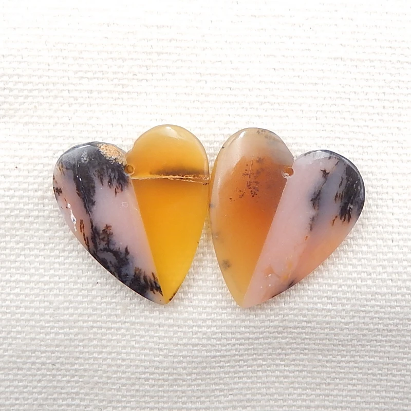 Розовый опал с желтым опалом Интарсия сердце серьги бусы, хит продаж, очаровательные женские ювелирные изделия подарок драгоценный камень на заказ, 24x21x4 мм, 5,1 г