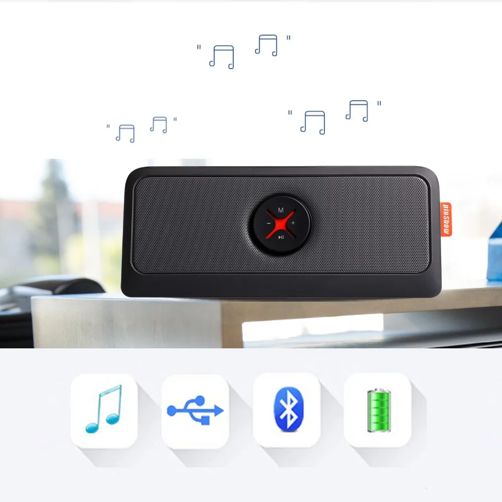 Бренд: Pinshow Динамик: 2x2 & Prime; динамики Версия Bluetooth: V2.1 + EDR Аудио вход: Bluetooth/Aux-in Батарея: перезаряжаемая литиевая батарея 1000 мАч Время работы: 5 ~ 6 часов Выходная мощность: 2x3 Вт Диапазон передачи Bluetooth: 10 м на открытой местности S/N: ≥ 60 дБ THD: ≤ 0.2% Частотная характеристика: 60 Гц ~ 20 кГц Разделение: ≥ 45 дБ