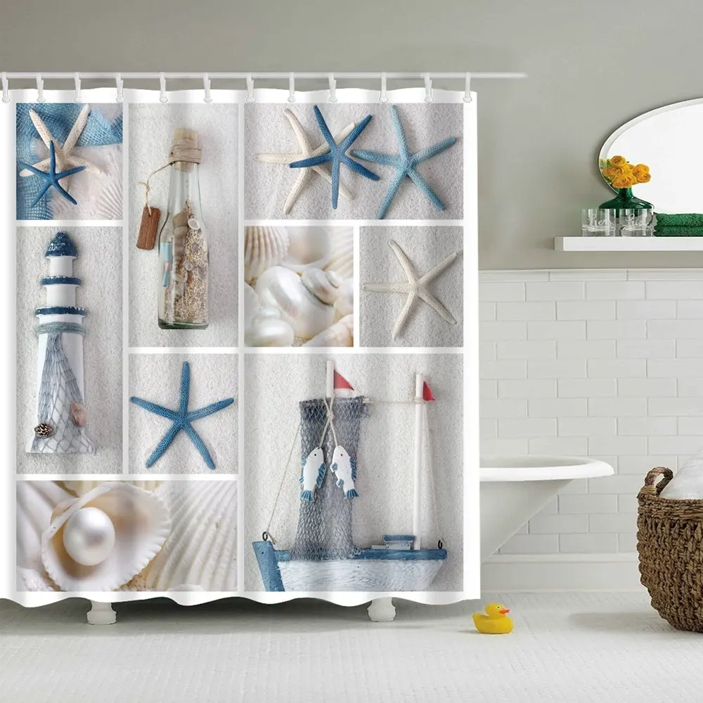 Dafield занавеска для душа Морская звезда Морская раковина пляжный песок голубое небо пляжная тема занавеска для душа Водонепроницаемая полиэфирная ткань