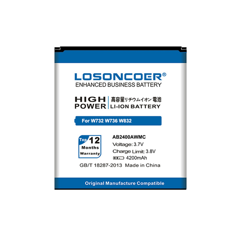 Аккумулятор LOSONCOER 4200 мАч AB2400AWMC для Philips W736 W832 W732 D833 W737 W6500 W9588