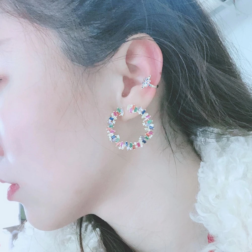 2021 Fashion top quality factory wholesale J shape stud micro pave cz star earring cute Girl party christmas Gift charm Jewelry