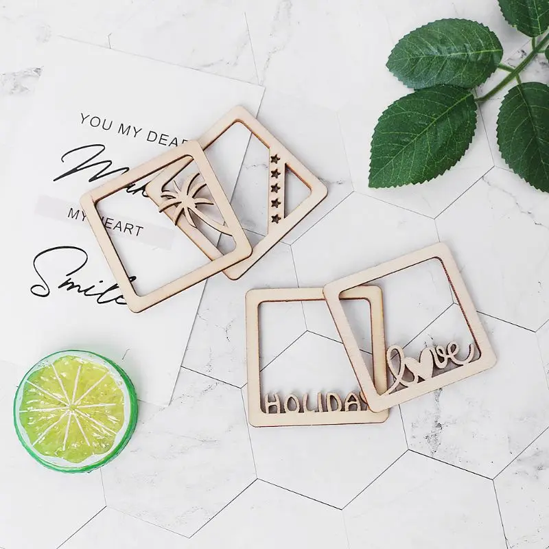 10 шт. лазерная резка деревянная фото рамка штампа квадратная форма украшение Деревянный винтажный ремесло Свадебный декор