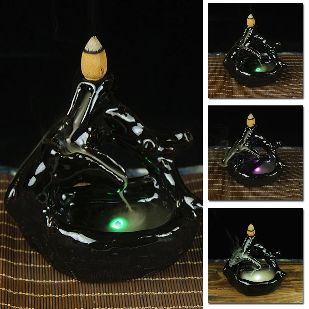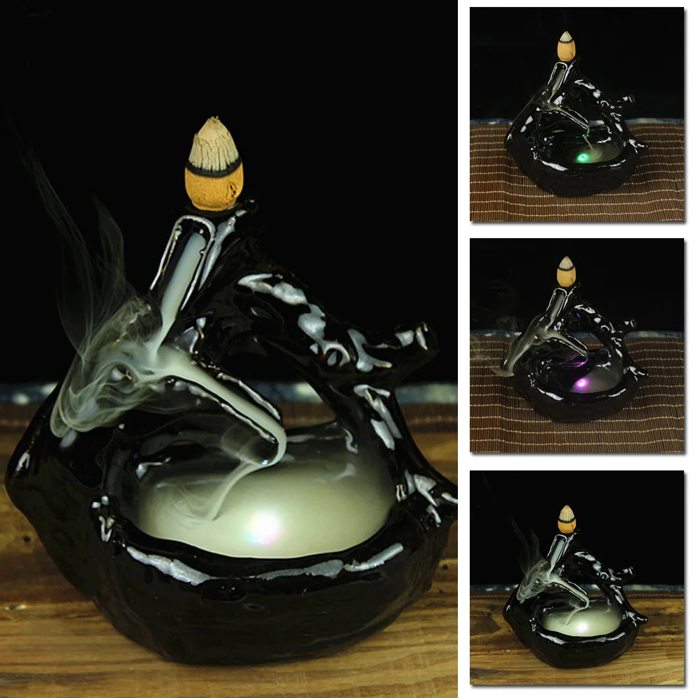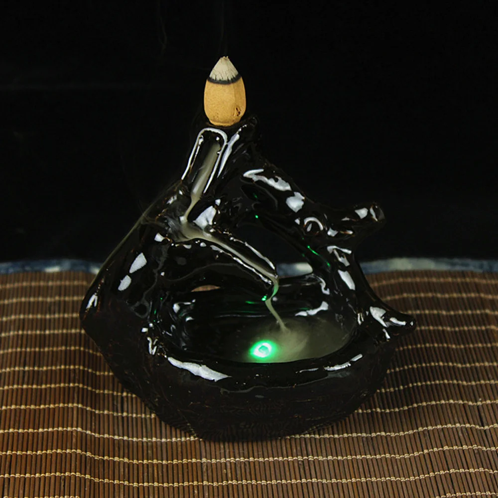 * Креативный черный светодиодный керамический, с обратным потоком благовония горелка струящаяся вода конус держатель
