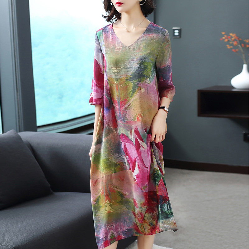 Женское длинное шелковое платье с цветочным принтом винтажное пляжное макси для