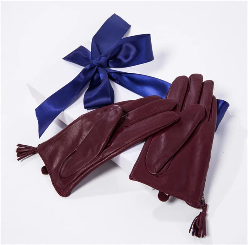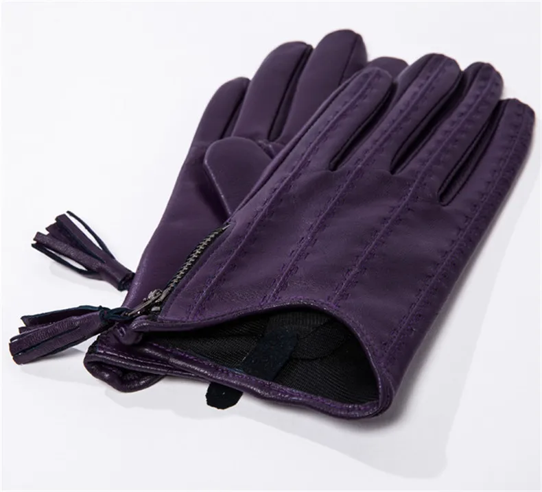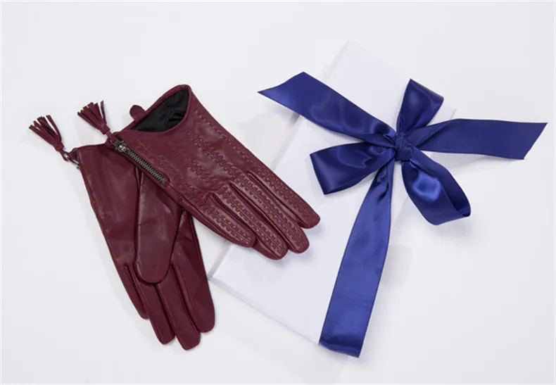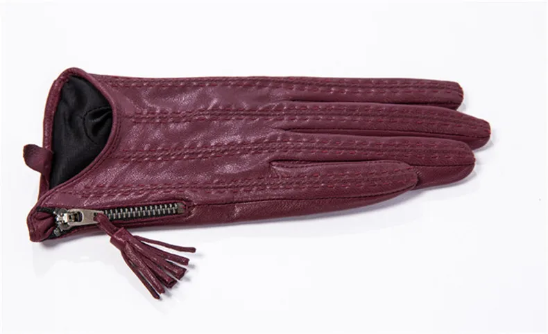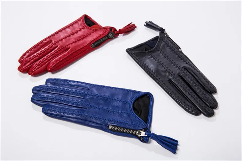 Перчатки для сенсорного экрана, натуральная кожа, чистый импортный козья кожа, кисточка на молнии, короткий стиль, черный, европейская версия, Женская сенсорная пленка WZP17
