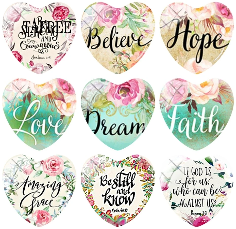 TAFREE художественное фото букв и цветов 25 мм DIY стеклянный кабошон узор сердце купольное ювелирное изделие для подвески брелок ожерелье Брошь
