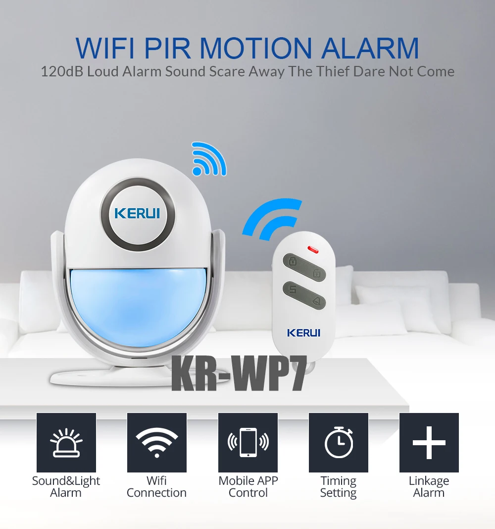 KERUI WP7 WIFI система сигнализации движения 120 дБ Домашняя безопасность беспроводной PIR детектор движения светодиодный светильник для вспышки инфракрасный датчик