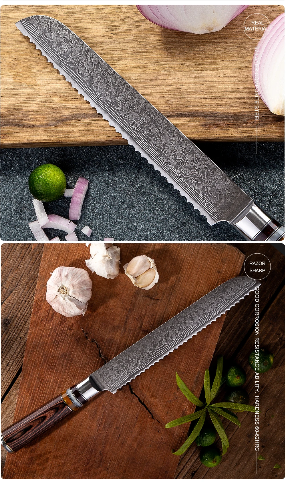 8 дюймовый нож для хлеба из японской дамасской нержавеющей стали