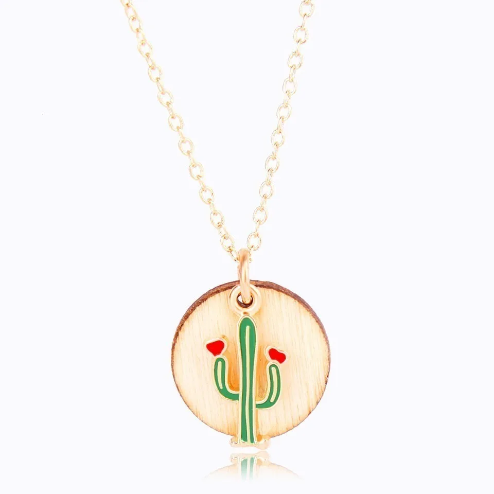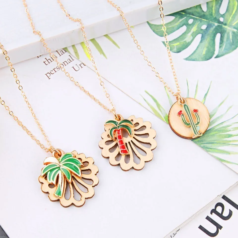 Ожерелье с подвеской в виде цветка кактуса Lucky Plants, деревянный цветок с металлической кокосовой пальмой, Трендовое ювелирное изделие для женщин, 2019