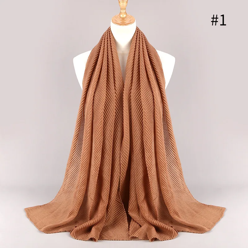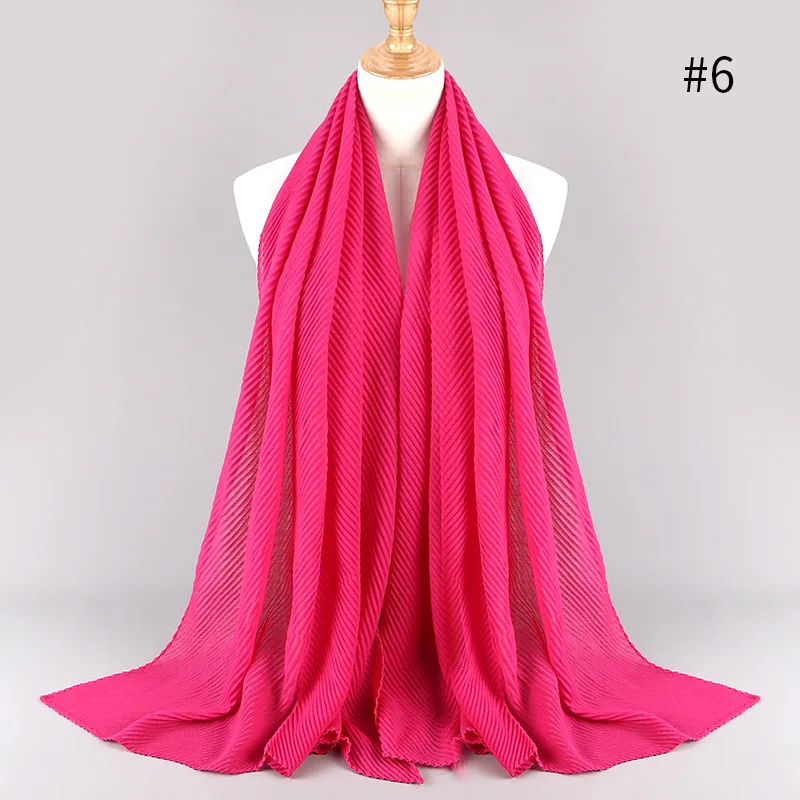 90*180 см, больше размера, Женский хлопковый шарф в складку, мусульманский хиджаб, шарф, тюрбан, головной убор, сплошной цвет, плиссированные шарфы