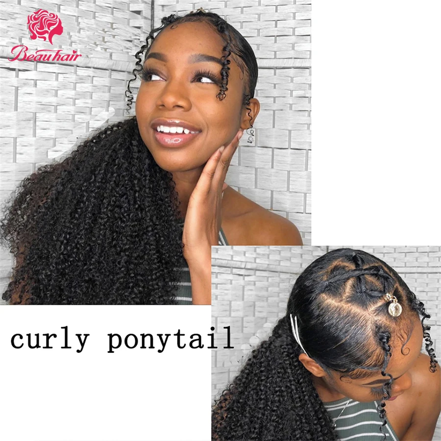 Кудрявые накладные человеческие волосы для конского хвоста наращивание