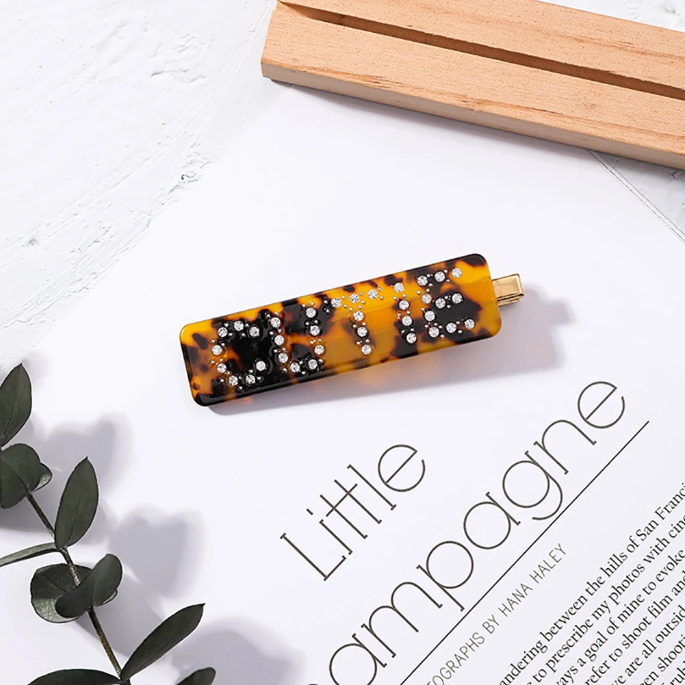 Модный сверкающий горный хрусталь Леопардовый принт боковой набор заколок для волос клип головной убор