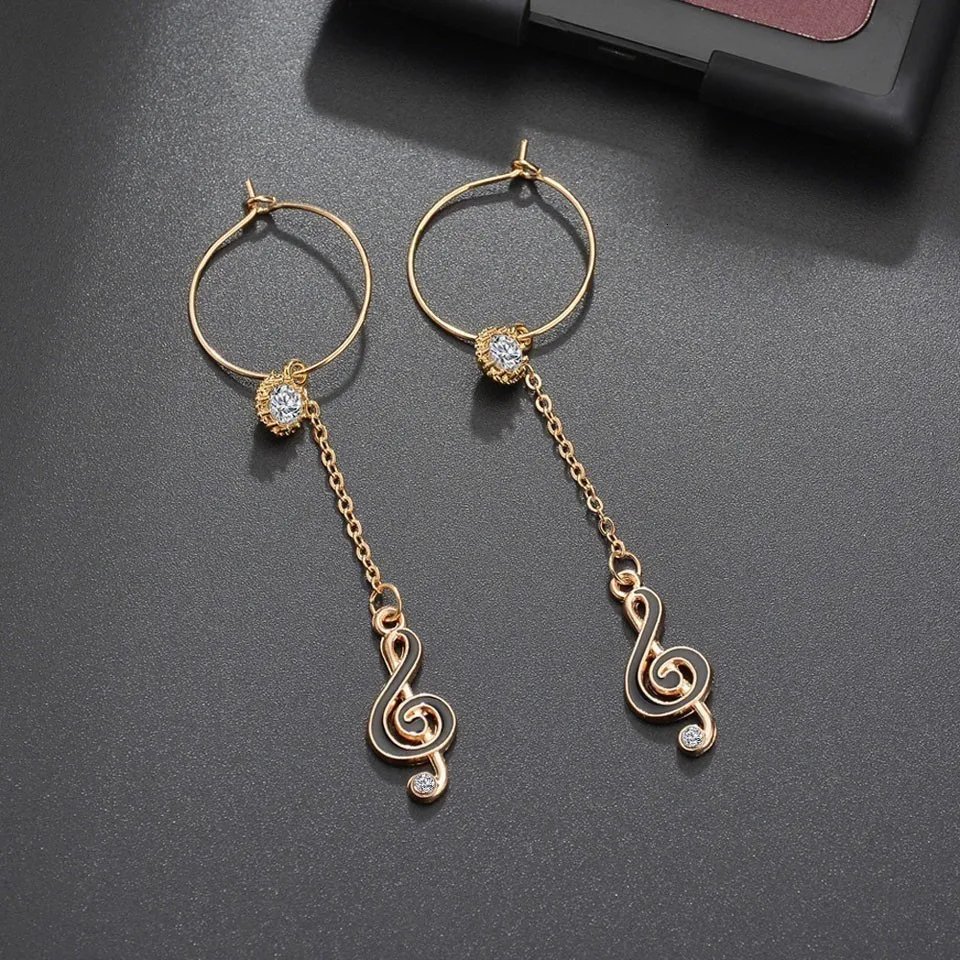 Женские серьги-капли со стразами и музыкальными нотами, модные ювелирные изделия, женские серьги-капли, серьги ручной работы, ювелирные изделия, подарки для женщин
