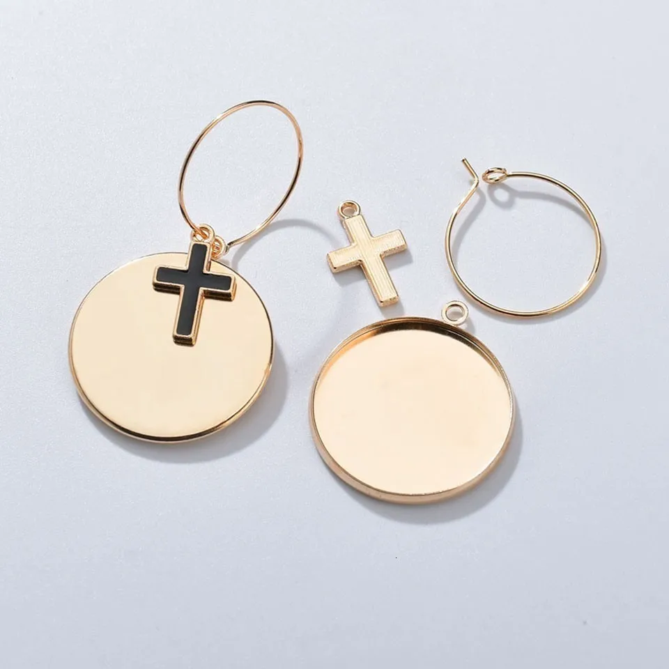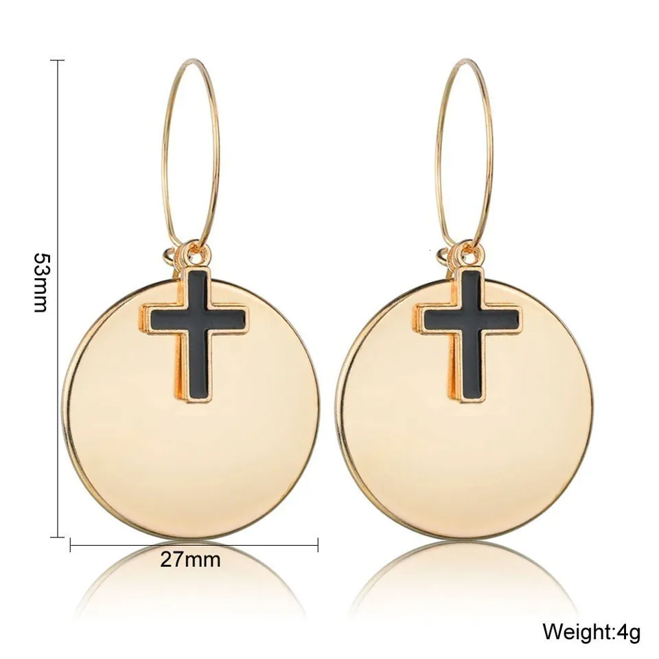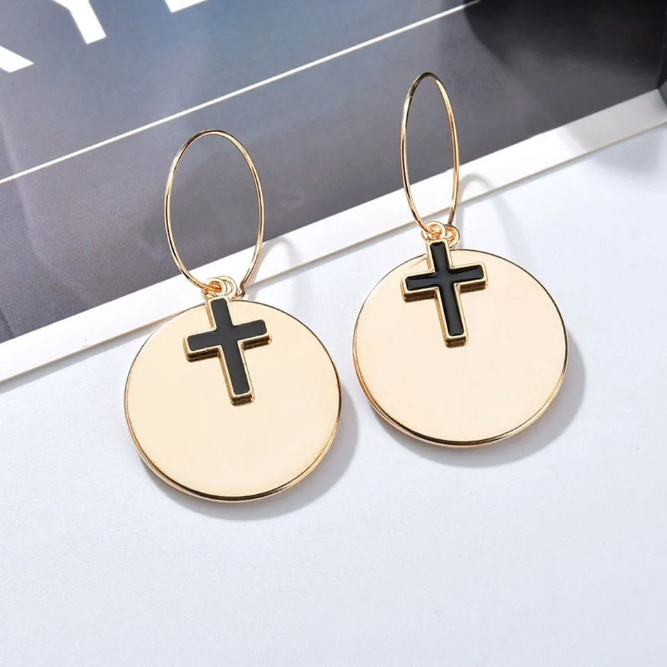 Women Fashion Drop Earrings Round Plat With Cross Wedding Party Trendy Jewelry Female Cute And Romantic Handmade Drop Earrings
