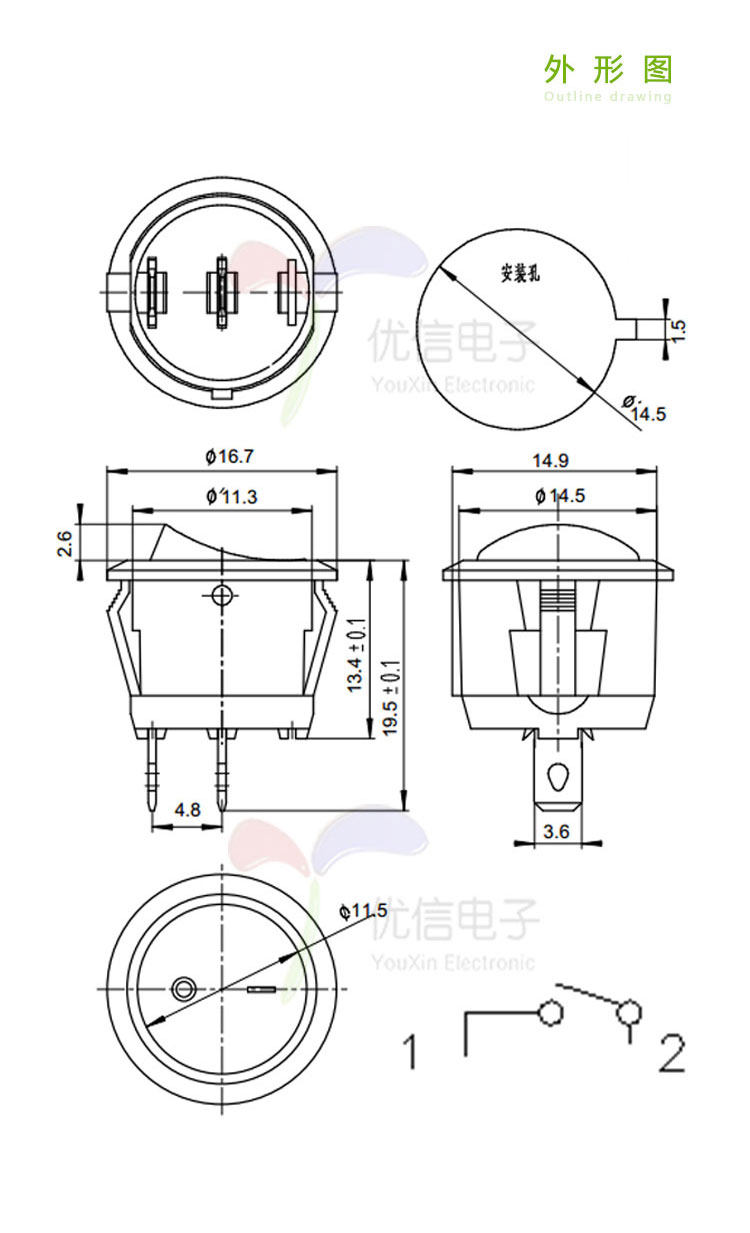 Круглый тумблер ВКЛ./ВЫКЛ. 3A/250VAC Пластиковый Кнопочный переключатель красный