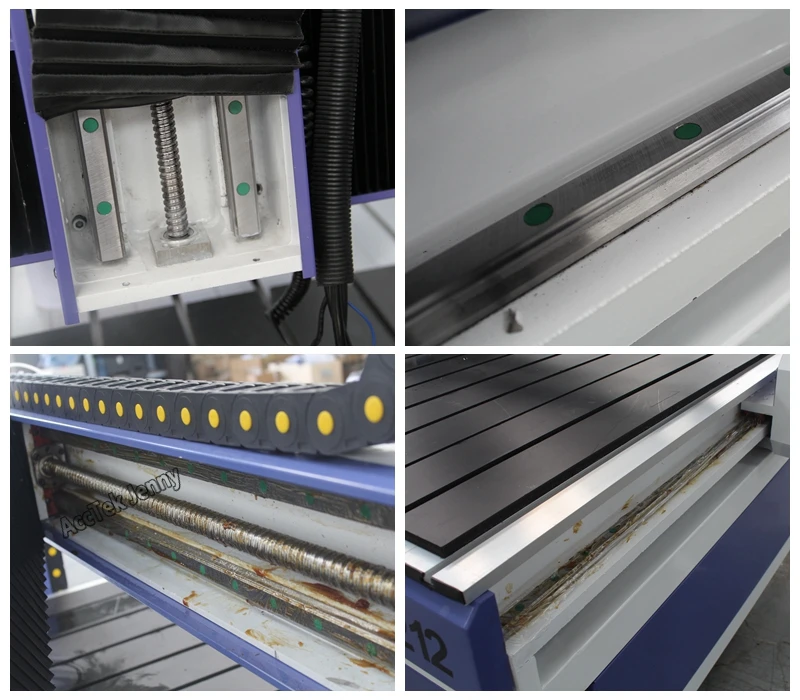 3) X,Y,Z axis использует тайваньский шариковый винт TBI и 20 мм квадратные направляющие, высокая точность. Чтобы предотвратить ржавчину во время доставки, он будет окрашен маслом.