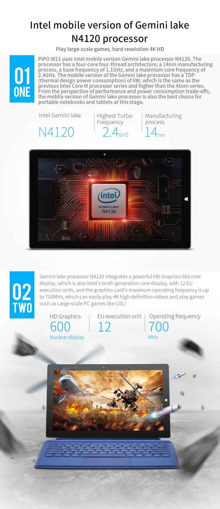 11,6 "Pipo W11 Win10 Pro 2 в 1 планшетный ПК Металлическая задняя крышка