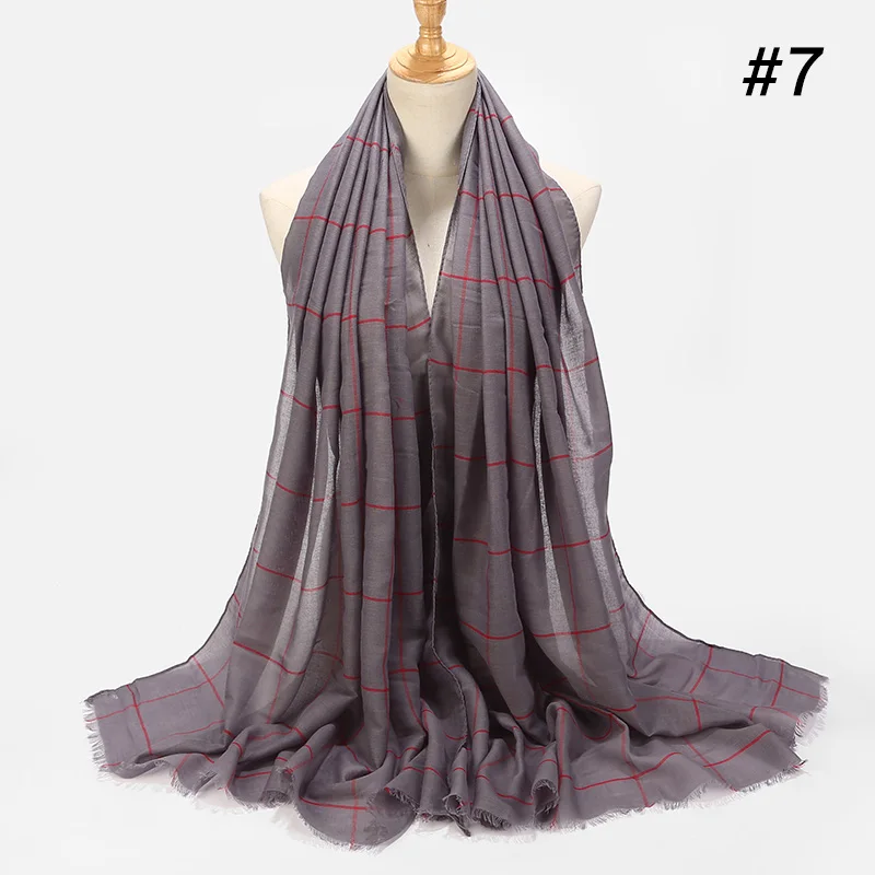 1 шт. классический клетчатый шарф Шотландка хлопок вуаль мусульманский хиджаб для дам длинные поперечные полоски двойной цвет исламский хиджаб Шаль Обертывание