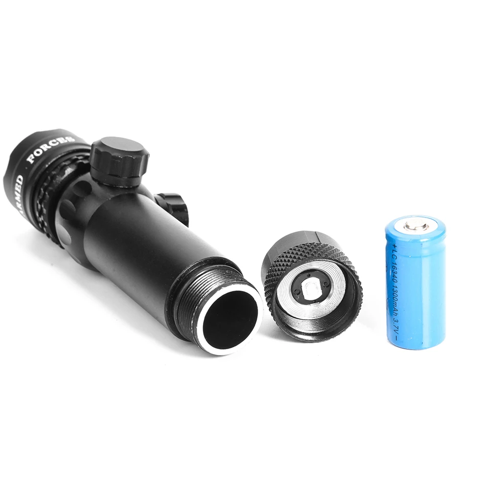 Тела Длина: 130 мм (5,12 дюймов) Диаметра лазерной трубки: 25,4 мм (1 дюйм) Превосходное оптическое стекло <5 мВт красный лазерный излучатель Длина волны 532 нм Диапазон: 300 ~ 500 м Питание от аккумулятора 1 * CR123A Размеры: 5,12 х 1,54 х 1,54 в (13,0 см х 3,9 см х 3,9 см)
